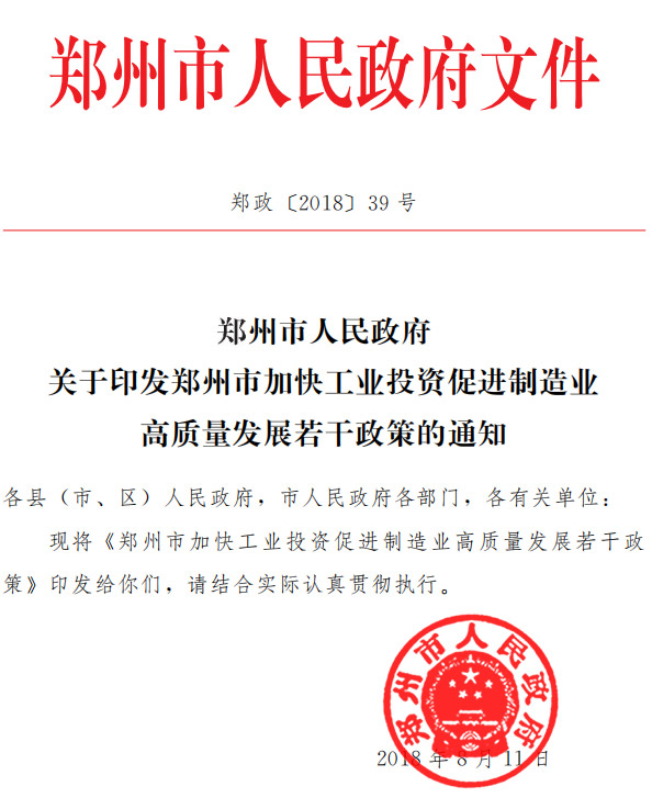 政府在不斷督導(dǎo)企業(yè)進(jìn)行改造升級(jí)的過(guò)程,也在不斷為企業(yè)考慮,出臺(tái)補(bǔ)貼政策。8月份,鄭州市出臺(tái)了加快工業(yè)投資促進(jìn)制造業(yè)高質(zhì)量發(fā)展若干政策